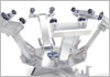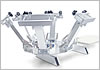 例えば濃色生地への4色分解フルカラー印刷を行うのにCMYK用スクリーン4枚とアンダーベースホワイト(もしくは抜染)用スクリーン1枚、計5枚を使用し、更にもう1枚特殊カラーのシルバーやゴールドなどのスクリーン枠を装着する事が出来る、とても振り幅の広いスペックです。