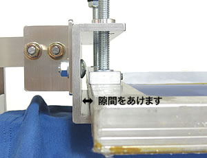 2枚以上の版を使用する場合は2枚目以降の版の位置合わせを考慮してクランプヘッドとスクリーン版の間に隙間を設けてクランプします。